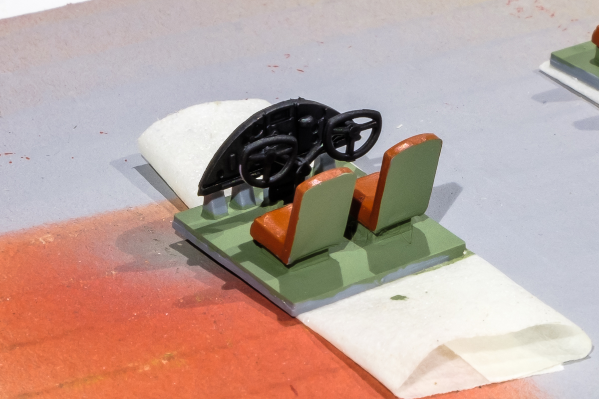 The seats of the new Northrop Delta 1D are fine – the red colour is supposed to be leather. The instrument panel fitted well and the control wheels are a joy…but they are only a joy if you are prepared to super-glue them in. Cyanoacrylic cements are wonderful if you are the sort of person who likes playing with razor blades and loaded pistols. I encountered them firstly in 1972 when they were marketed as a denture repair alternative and I watched people destroy their false teeth for at least a decade with them after that. They did have a place in the dental laboratory, but not in the patient’s mouth. They certainly had a place on the fingers of the modellers. and the fingers had a place wherever they touched…