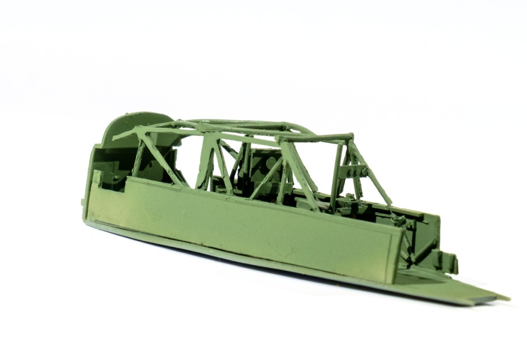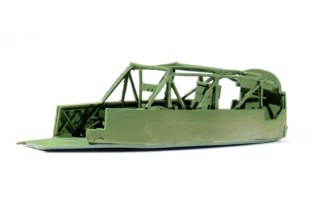 The method of construction chosen by Special Hobby was to make an internal ” tub ” of this complex structure and drop it into the midsection of the model – then cover it with clear plastic sections that can be masked and painted.