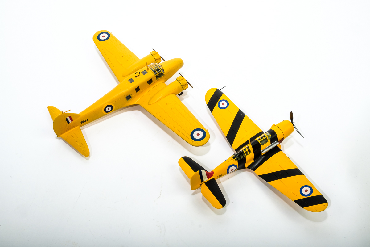 The Nomad was the closest to the Anson as far as actual basic appearance, though in this case I found drawings of the original aircraft out of Ontario with a bumblebee stripe that proved irrestistable. But I did lay down the basic Trainer Yellow and the black stripes in Tamiya acrylic. In this case the variable was to use gloss yellow acrylic plus a few drops of red as the colour coats to see if one could get to a smooth decal-able surface without a gloss spray.