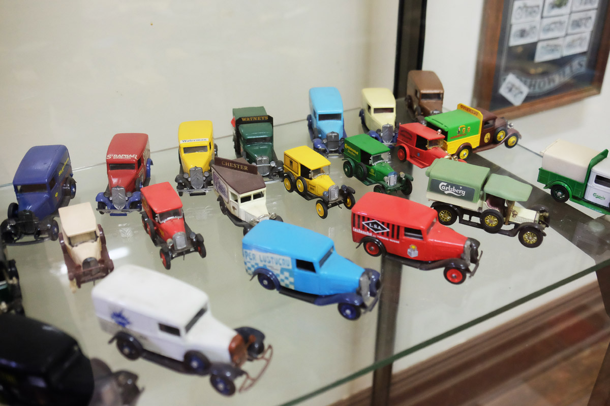 The Little World portion is in the front rooms of the building. There are a lot more cabinets of model cars than I have pictured here, and in some cases they are sorted by era or type. A keen curator with more shelving, better lighting, and time to do more signwriting could make a great display here. Even more tempting – they could find a local model maker and commission dioramas of the various eras and locales and then make a whole series of little worlds.