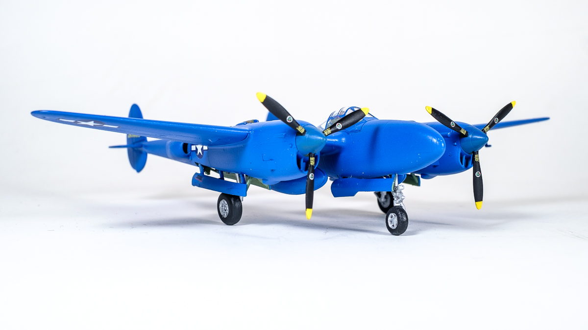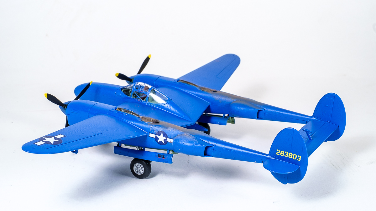 The USAAF PRU Lightning has a wonderful bonus – you don’t have to do any camouflage masking. Just blue it all over and then do the decals and surface coating. Of course there’s a bit of cutting and filling prior to this, but no more than an average amount.
