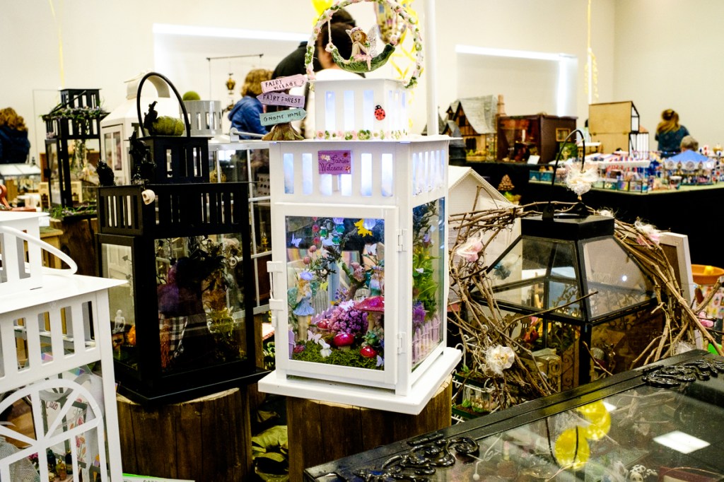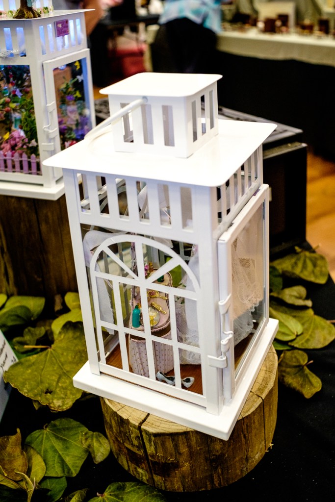 The deliberate use of a third-party item to contain a Little World is nothing new – there have been ships in bottles for hundreds of years. Book cases, record players, coffee tables, and any form of enclosed space has been turned into a boundary for a little world. In this case the craft, garden, and furniture shops have come to the rescue. And unlike the people who try to build a little world inside a cast-off television cabinet, the Lantern Ladies have something that can he transported as easily as picking it up. It even has a hook or handle on the top to help.