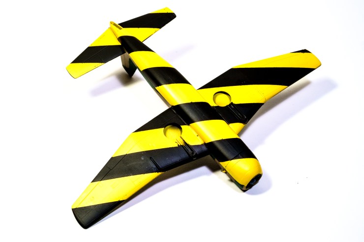The experiment this time revolves around the Mr Color lacquer-based acrylic paints. They are stocked in two of our local hobby shops and the range seems quite as wide as the corresponding Mr. Hobby aqueous-based acrylics and the similar offerings from Tamiya. I invested in 6 bottles of colour based upon British fighter and bomber camouflage…as well as their bright yellow to see if it was going to be close to the Humbrol 22 Trainer yellow.