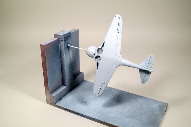 Nevertheless, I was delighted with the hole down the nose that let the Lavotchkin onto the factory painting jig. The ability to spin the model on its axis while you are spraying means that you can be pretty seamless around the sides. White Tamiya primer and then white Tamiya paint and a custom Mr. Hobby colour for the underside. There’s more mixed for the next Soviet winter plane.