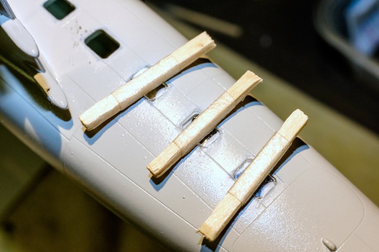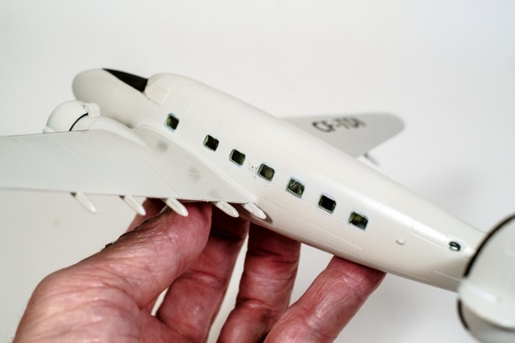The separate window panes favoured by the pesky European model kit companies have two things in common; they are either too big or too small. The large ones need trimming before they will push into the window openings and the small ones need support when they are in there – otherwise they just fall straight into the interior and rattle around forever. The glue that retains them – Micro Kleer – is wonderful as long as the plastic window is in position long enough for it to set.