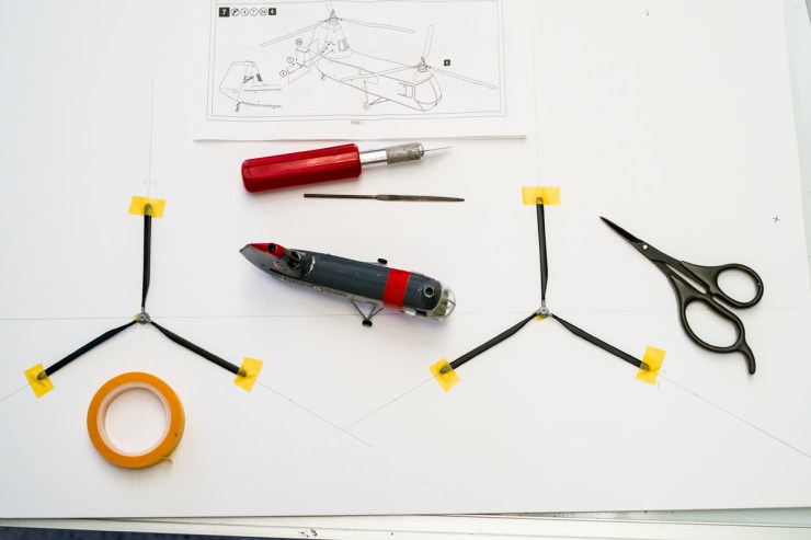 The rotor hub arrangements for the next Piasecki I am building are much better – but then the model firm is Italeri and they have much bigger production and much more precision. They are clever in moulding the rotor droop into their products on the sprues – the Amodel one is drooping because the rotor blade attachment is so poor and fragile.