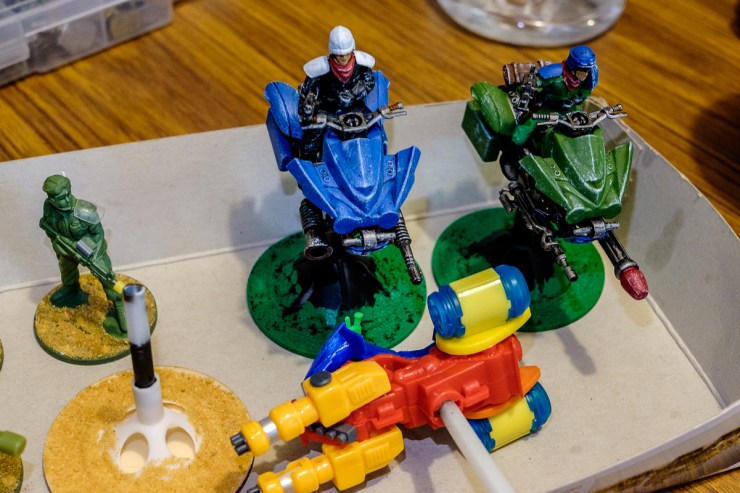 I counted wooden skewers, tongue depressors, toothpicks, screws, nuts, drawer knobs, and countless other craft-shop and crap-shop purchases being glued, clamped, and painted to make fleets of spacecraft for an interplanetary war.