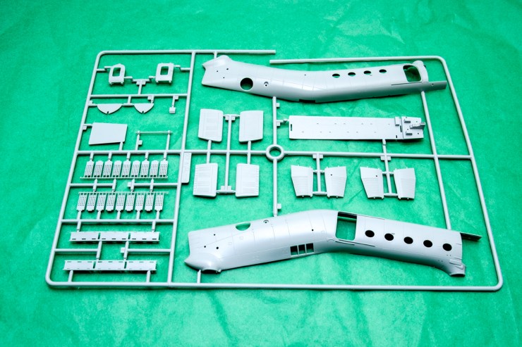 The sprues are normal light grey – with a surprising amount of ordnance that will not be used. I see several machine guns and a Oerlikon cannon on a swivel mount. I’m going to investigate to see who in the world thought that was a good idea and how they imagined it was going to work – the Banana only has two smallish troop doors and I would wonder at its ability to absorb recoil.