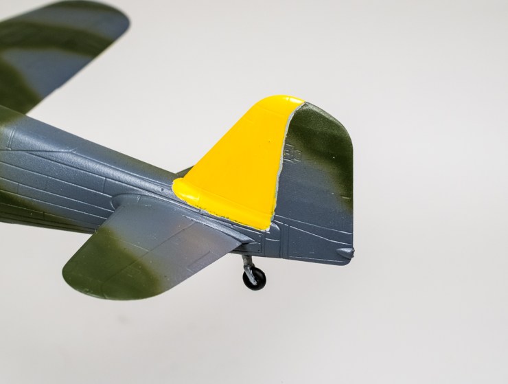 e.The yellow tail is striking, but makes a mockery of the rest of the camouflage. However, it, and the red machine gun port covers, proved to me that it is perfectly possible to paint Mr. Color on trim or discreet panels by hand. Just add a small amount of self-levelling thinner and brush two light coats. It eliminates the worry about masking and overspray.