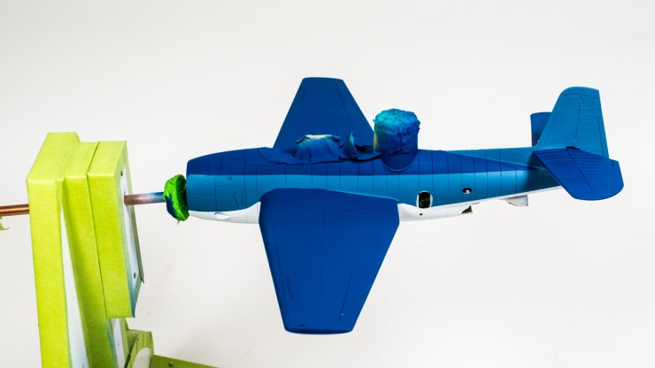 It is unfair to take a photo of a lady when she is only half-dressed…unless she specifically wants pictures of herself in that condition. I was reminded of this when I thought to picture the Avenger TBF-1 in her masking tape. But as this is a new departure – a three-level USN paint scheme – I wanted to get it down for posterity.