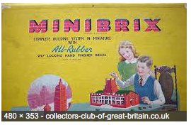 It was an English product imported into Canada and it was made of real rubber – little red rubber bricks with pegs on one side and holes on the other. Rather like LEGO but only two pegs rather than four. The bricks were hard rubber but you could squish them.