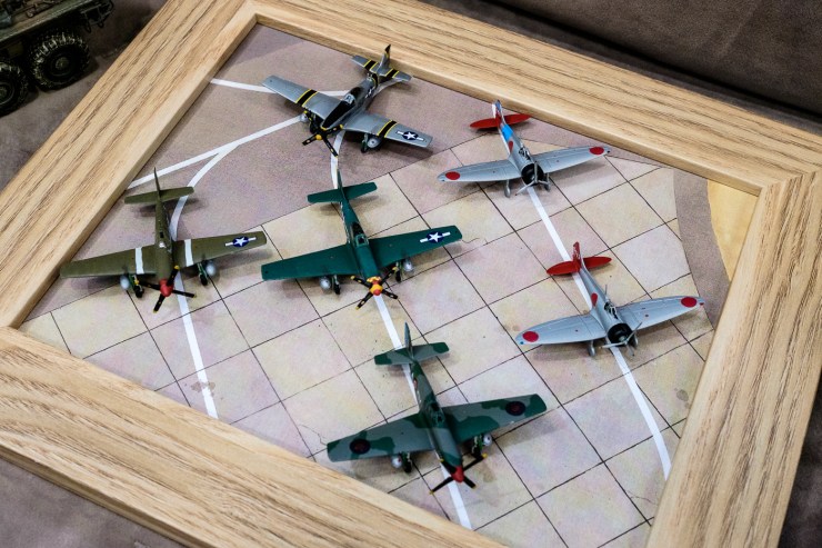 There was also a cheerful sense of modeller’s spirit, as a section of one table was set aside for ” modeller’s other interests “. Ie, planes and ships. Just a small representation but enough to show that the organisers were a welcoming lot and wanted everyone to have a good time.