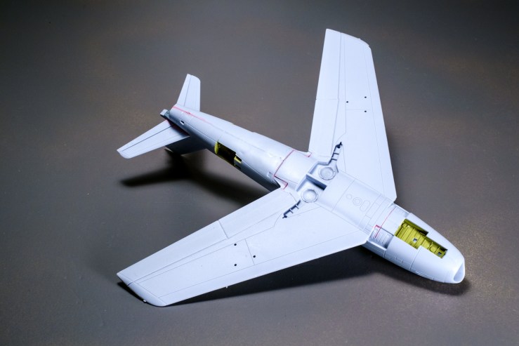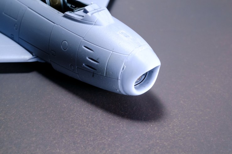Well, I will tip my hat to Airfix – this is one lovely build. I am almost going to get away with no putty, and if the Mr. Surfacer can be coaxed to thicken up by letting it evaporate a little, I can paste it on instead. There was only one little bit of fettling on the wing roots and then they mated perfectly.