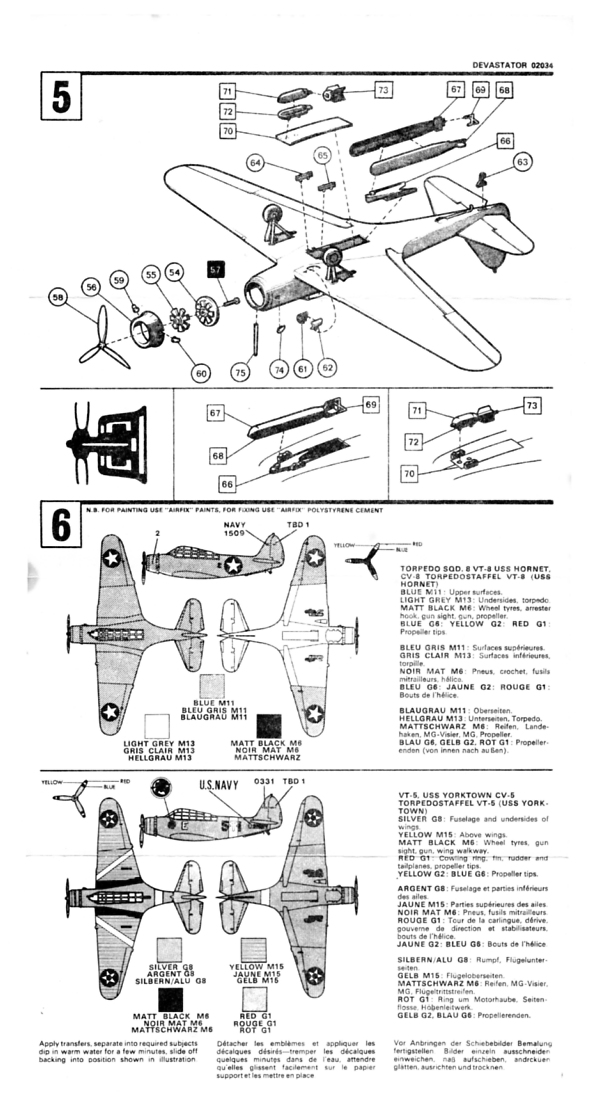 But there were nuggets in the dirt. This old Airfix Devastator was one of them. Knocked down to $ 9 because the decals were thought to be unusable. All parts there, including instructions, and how could I resist – it was on the list for the Yellow Wing Navy. A 70’s kit for sure, but perfectly in keeping with the Brewster Buccaneer and Vultee Vindicator I already have. Now I’ve got a fighter, a bomber, and a torpedo plane.