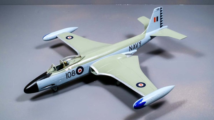 The decals have gone on the RCN Banshee and it is ready for the display hall of Canadian service aircraft. The suspect upper grey is still on it and sealed in with varnish.