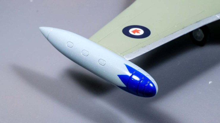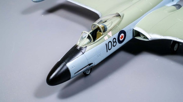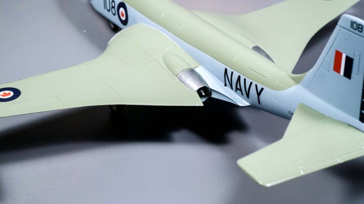 The tip tanks are painted rather than decaled, but the rest of the rather elegant markings are off the transfer sheet. I’m really grateful that the RCN doesn’t follow the USN in the practice of stencilling everything everywhere as I find too many of the tiny ones a strain on the patience.
