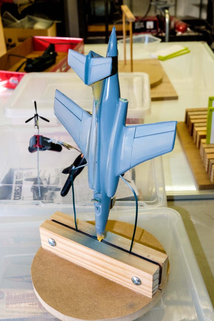 Well this time you get the effect of art and science. The holes have been filled and the layers of lacquer applied. The new vertical painting stand has proved invaluable and is very much steadier than anything that has gone before. I can’t think why I did not make one sooner.