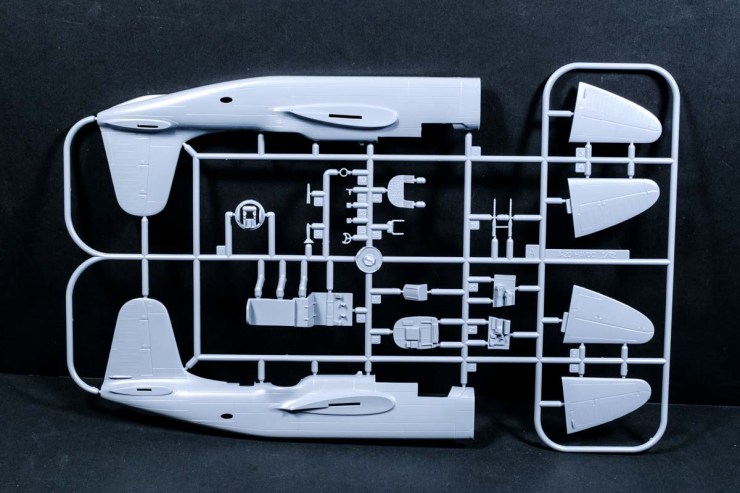 The kit is typical Czech small-run. A few photoetch and resin parts but the bulk done with clean injection moulding. Few, if any, locating pins or tabs but reasonably accurate parts that will glue and fill satisfactorily. Thank goodness the propellers are all one-piece mouldings – I hate the kits with a hub and separate blades.