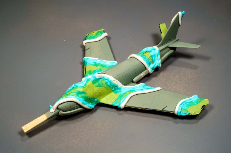 The debate about how to put on soft-edge British camouflage seems to have finally been decided – the J. Burrows Tuff Tac is the answer for most effects. The Sabre needs a simple day fighter scheme and in this case the contours are very smooth – no better time to trial the new technique.