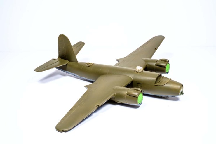 A new experiment in painting – the demarcation line on the Martin Marauder is a wavy one – a particularity of the USAAF planes at the time. I am going to try to duplicate it by masking off a mean curved line with Tamiya tape and then developing the curves with masking fluid. See the heading image.