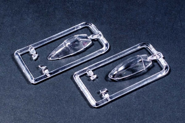 The clear canopies look well done, and there is little overt sprue. And the instrument panel looks as it it will paint up well with some detail visible. No pilot.