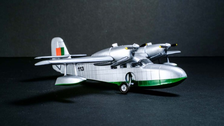 I was reminded a lot of the Airfix Grumman Duck that I built as a Royal Mail Canada plane. The silver brings out the riveting to best advantage and some bright colour helps. The Portuguese example I found on the net had either a black hull under the waterline or the clean green you see here.