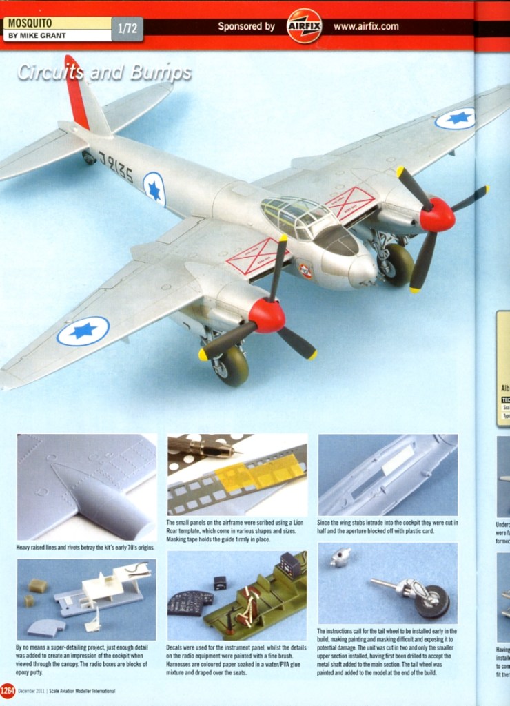Mike Grant had been a pioneer where I wished to go and I was fortunate to discover an magazine article he wrote – sponsored by Airfix – that dealt with exactly the aircraft I was working on. The story was illustrated with a lot of good coloured photos and Mike had gone into the scale aspect and detailing of this kit far more than I intended to do. But it was great to see what sort of extra things he could think up to do to it out of the box. And his occasional disparaging remark ( old kit, remember ) was good warning when I came to the same place in the build.