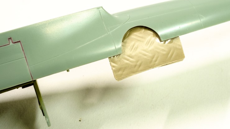 Then it was a case of planking the inside on the halves of each fuselage hole with short lengths of Evergreen strip, carefully butted up to fill the thing. I wanted a structure that could take Vallejo acrylic putty and then Perfect Plastic Putty as a final thin layer. I did the filling in thin layers to allow for complete curing.