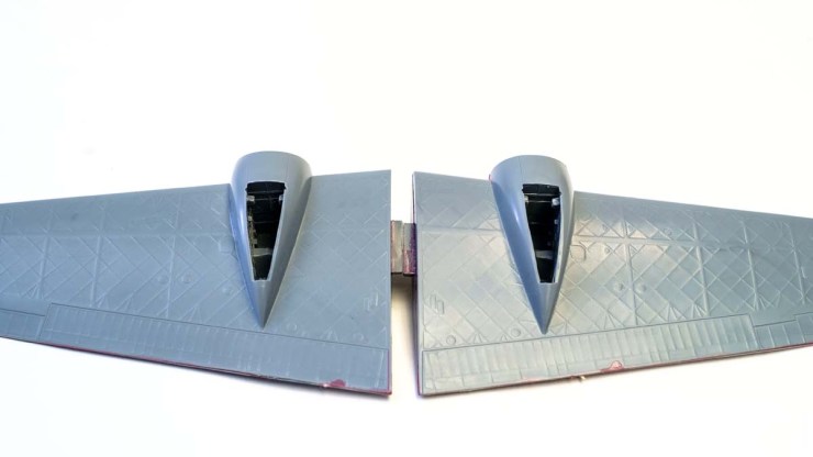 Still, I’ll consider myself lucky if the turrets look acceptable. Note I have left off air scoops until later – like aerials, exhausts, and guns they tend to get broken in the early stages. I have tested the turrets and found that they can be rolled into their sockets after the plane is painted – this saving some horrendous masking.