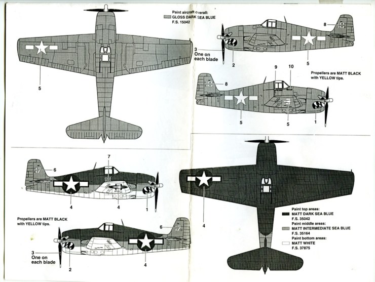 In my case, as I have a WWII US Navy Hellcat in the museum, I think that these will go to different liveries. One I plan to do as a Royal Navy Fleet Air Arm plane from one of their carriers – and it may be for SEA deployment. The other will be built unoccupied as a US Navy drone aircraft from the Korean era. In both cases the markings probably exist in my spare decal stash right now – No more needs to be spent.