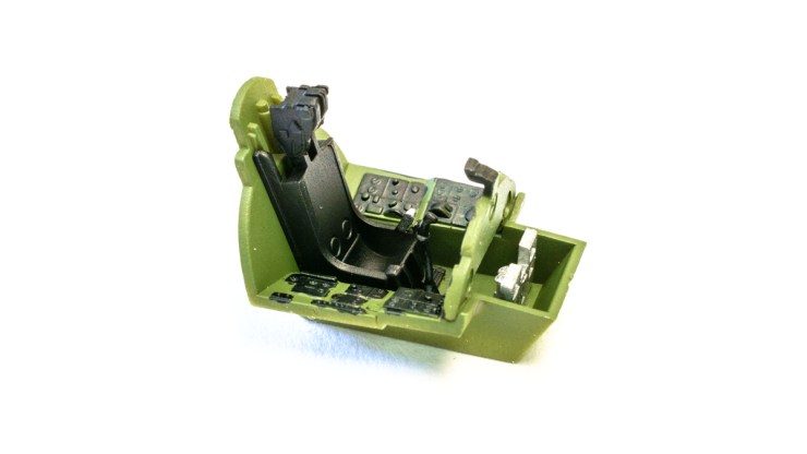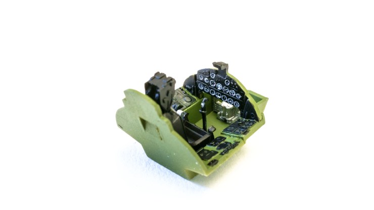 The cockpit assembly of the Panther has just been completed and I must say it’s pretty nice for a $ 20 model. 5-piece, and some fine moulding on the sidewalls and instrument panel. And for a change the panel decal actually fit the piece.