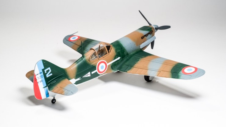 The D.520 paint job is not perfect – I was trying the freehand spray technique with the pressure on the airbrush turned down to 8 psi and a very thin mixture. I think that this could combine with hand-held masks to make a viable technique – all you need to do is tighten up the edges a little. The next bargain kit will become a paint mule for this.