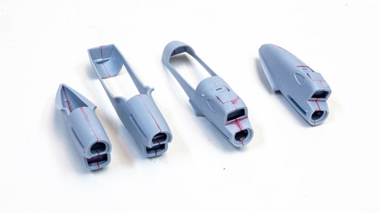 And the wheels are amazing – that’s the main gear compared to the size of main gear from a Spitfire and a Messerschmitt in the same scale.