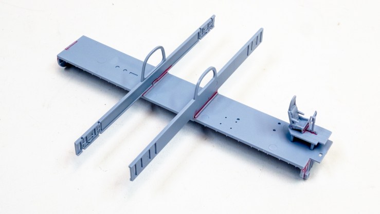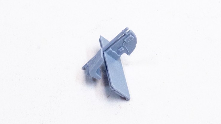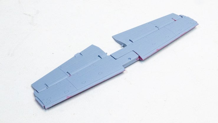 Final dry fit subassembly is the horizontal stabiliser. The two tongues that lock each other are handed for left and right. You can slide the tail in with no cement and then tack it once in place – no propping up the plane to measure anything. Beautiful engineering.