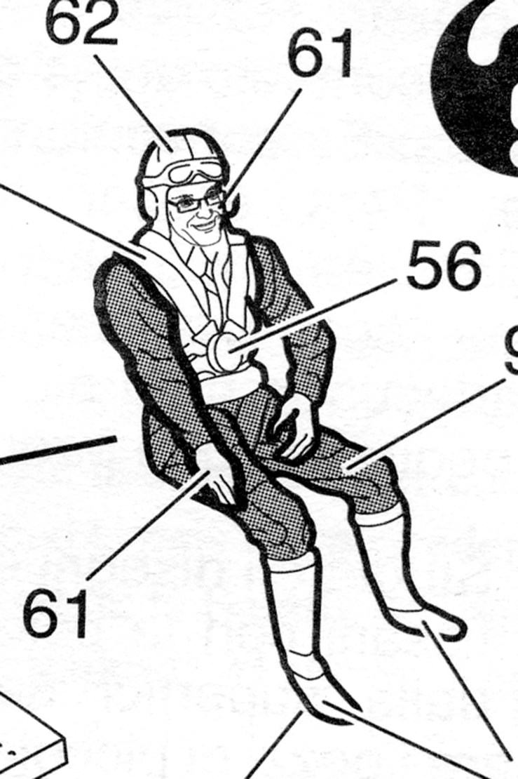 In an aside, have you looked closely at the drawing of the pilot in model Airfix instruction sheets? Here is a scanned enlargement of this latest one: