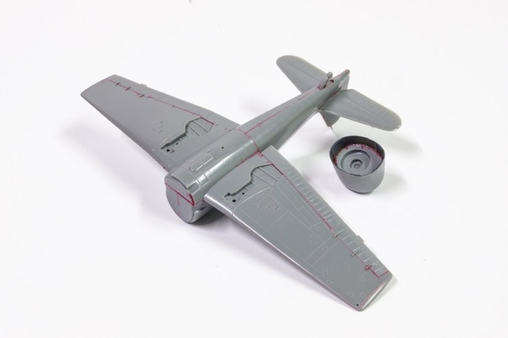 My Tuesday Soviet session has proved very productive. The Hasegawa Hellcat was opened and I commenced the cockpit at 9:00. I had wings and fuselage nearly ready for closure by leaving time – 12 noon. A session at home and the parts just slipped together. You’re looking at no filler whatsoever, and I suspect that none will be needed – the MEK welds the swarf into the line of the join.
