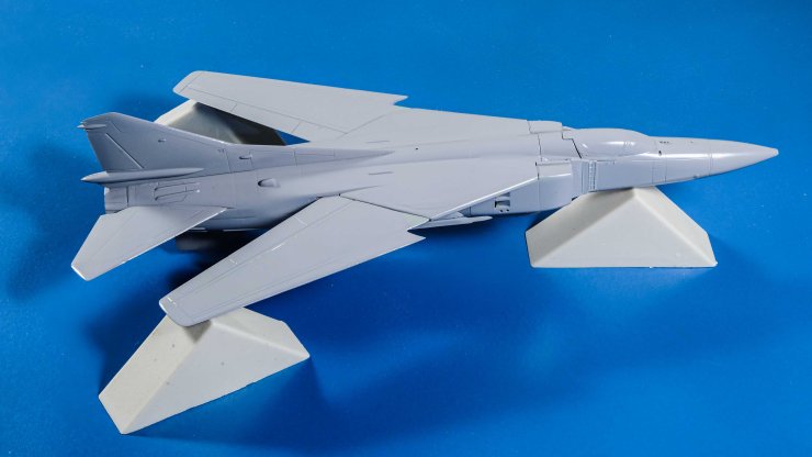 c. The weapons mounts and floppy tail have been added despite the fact that they make for a fussy surface. They’ve been reinforced with cyanoacrylate glue. The reason they were put on was to provide the same sort of air flow pattern that a standard model would have. And to pose the same problems that a standard build would if paint has to be removed.
