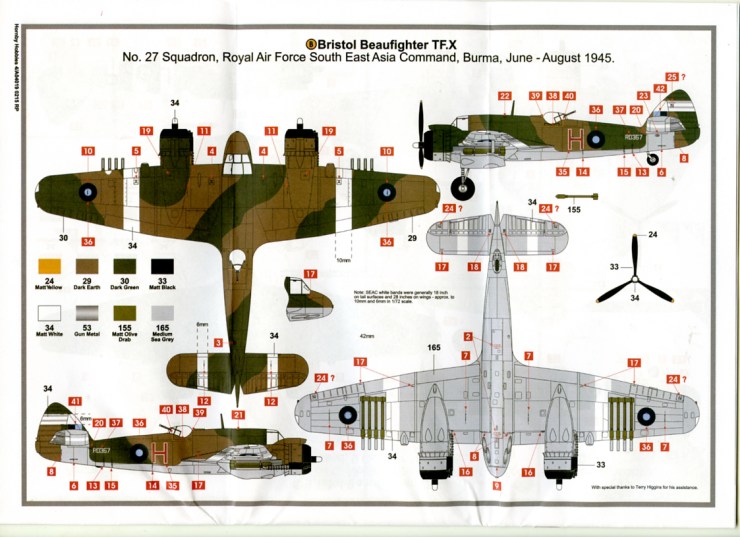 Note the SEAC roundels – for a future build – and fact that Airfix have very sensibly opted to instruct builders to paint the wing or invasion stripes rather than providing giant decal sheets. They’ve provided measurements in millimetres for each position – if you fancy them, they should be simple to mask and spray. Far better than the decals because these are always a difficult application, however they are mapped out on the paper sheets.