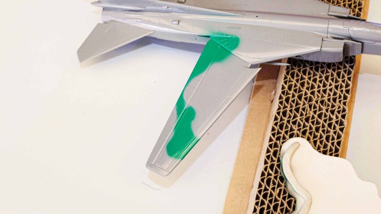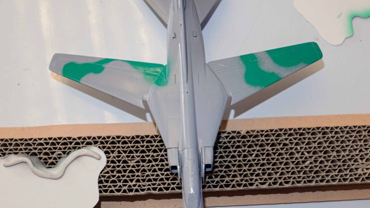For the second trial I hand-held the masks above the other wing’s surface and sprayed in the same fashion – trying not to get the spray too far under the edge.