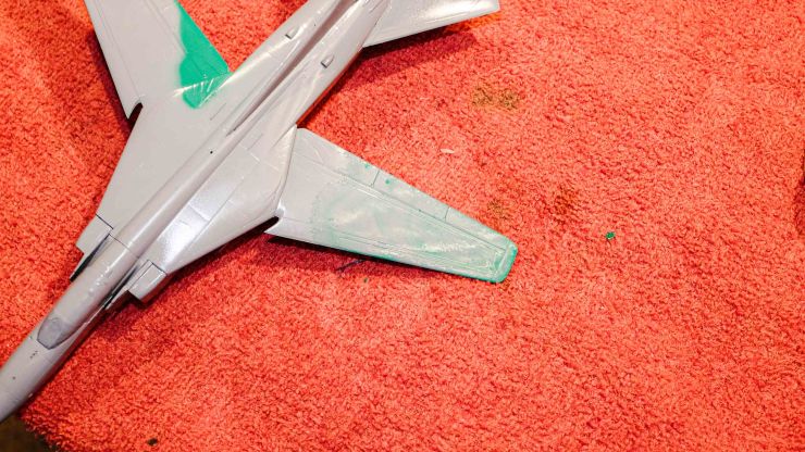 I’ll let the starboard wing dry overnight and see if the paint hoses off that side as easily. Then it will be a case of laying down a lacquer and trying to spray it off again.