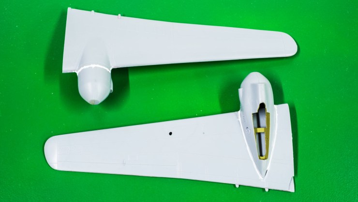 The wings are a good fit between top and bottom but the front of the nacelle needed a good run of Vallejo acrylic putty.