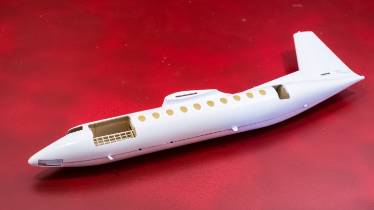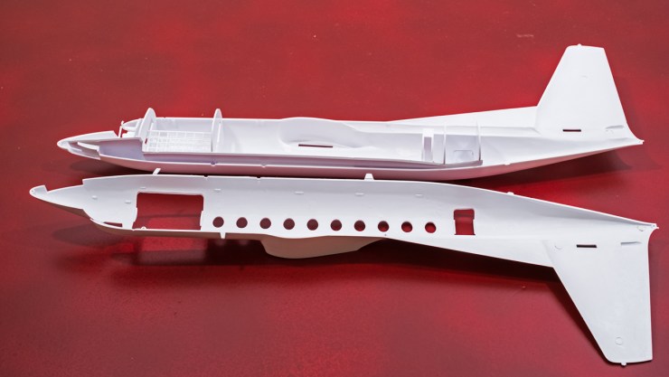 The basic interior tray is a near-perfect fit into the fuselage. No sanding or cutting needed. And despite the appearance of the fuselage halves, there is no appreciable seam when they fit together. This will be no putty queen.