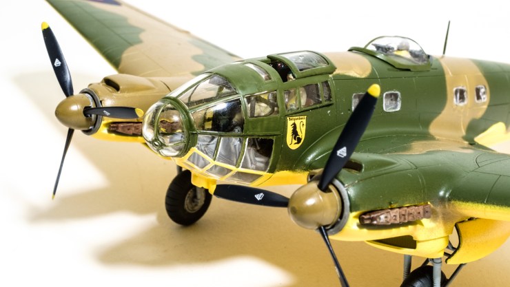 The Heinkel He 111 is done and I am very pleased. It has already visited RCAF WET DOG and been photographed. She’s got no guns or bombs aboard, but three RAF test crewmembers are buttoned up in there – as period photos show.