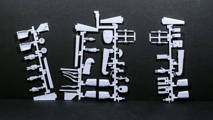 The sprue trees show definite age, though the flash is quite manageable. The plastic feels modern – which is also quite workable. The separately-packed clear parts look perfectly adequate for the job. There are part numbers cast into some of the larger bits – the fuselage halves for instance. I am not such a sentimentalist as to leave them there glaring at me -particularly as there is no interior provided.