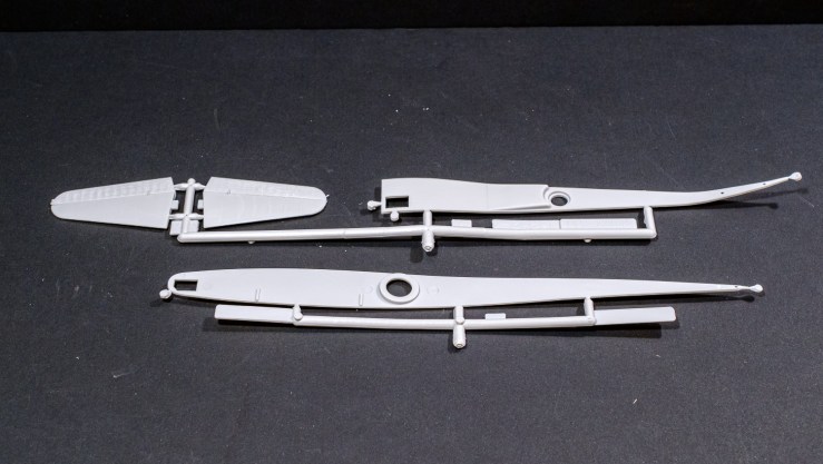The plastic is light grey – smooth in most places, and only warped over a very thin portion of the rear fuselage. This is not surprising considering the engineering of the kit and the design of the original – it will present no barrier when the time comes to close the fuselage.