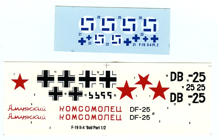 The decals look fine, though I am always leery of long propaganda lines of Cyrillic script flowing along the side of a fuselage. I may well choose a different scheme than that of the box. The kit provides a complete torpedo layout including air reservoir but makes no provision for it in the instructions – Google has pictures of the real things in WWII.