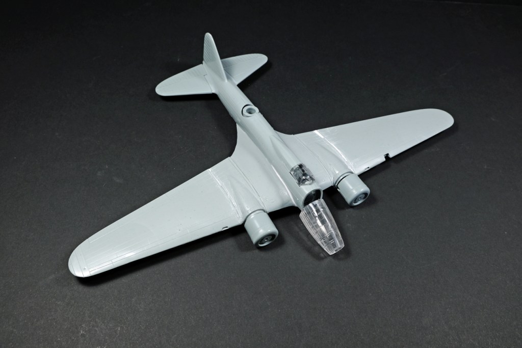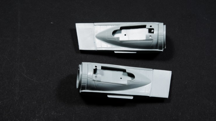 But in most of the other kits I’ve built, the nacelle is either an integral part of the wing moulding , or at least is applied in a separate set of castings around the wing itself. Zvezda, and Mister Craft have made each nacelle a separate part of the wing that sits between the inner root and the outer panel. There are two cement interfaces where other people get by with none.