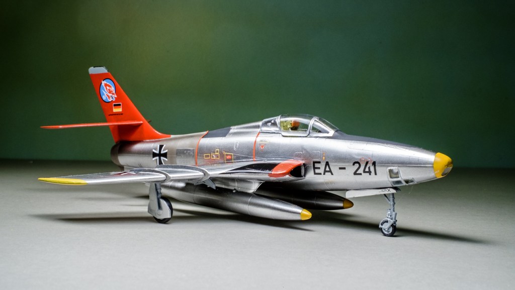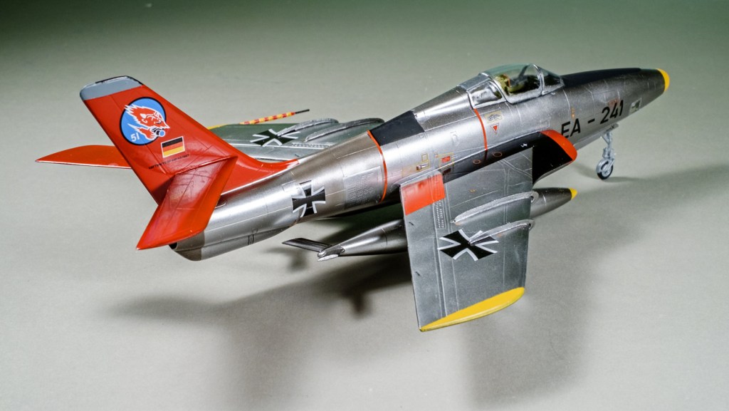This is a milestone for me – the first West German plane I’ve modelled. And the first extensive use of modified panels on a metallic finish. I’m really quite pleased with the way it has come out; in this case building a model strictly OOTB.