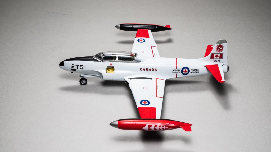 The CT133 that followed the ‘Birds for a few seasons was painted white with the then-current CAF insignia. A little easier to decal, but I miss the lightning flash. I would like to miss the dual-language nonsense, but that was a measure of how far Canadians could be bullied by Quebec. At least they have got the R in RCAF back by now…