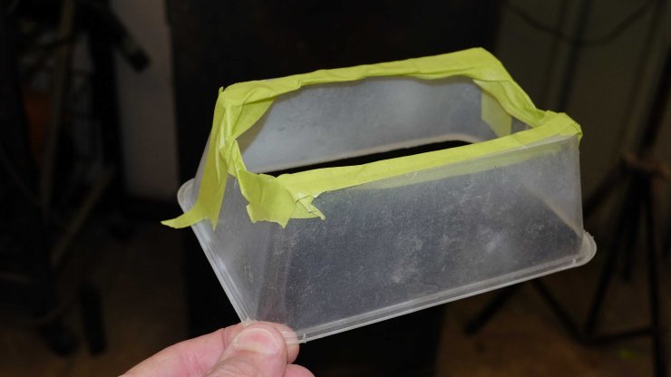 If you are working with lacquers and standard-set thinners this can be a remarkably fast process. Design your food container support well, and you can wrap the spray around between top and bottom so as to get even coverage on sides, nose, and tail.